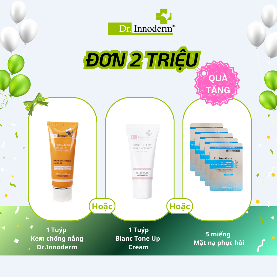 Đơn 2 Triệu: Tặng 1 kem chống nắng Photomax Cream hoặc 01 tuýp kem Inno Blanc Tone Up Cream hoặc 5 miếng mặt nạ post laser cooling ampoule mask.