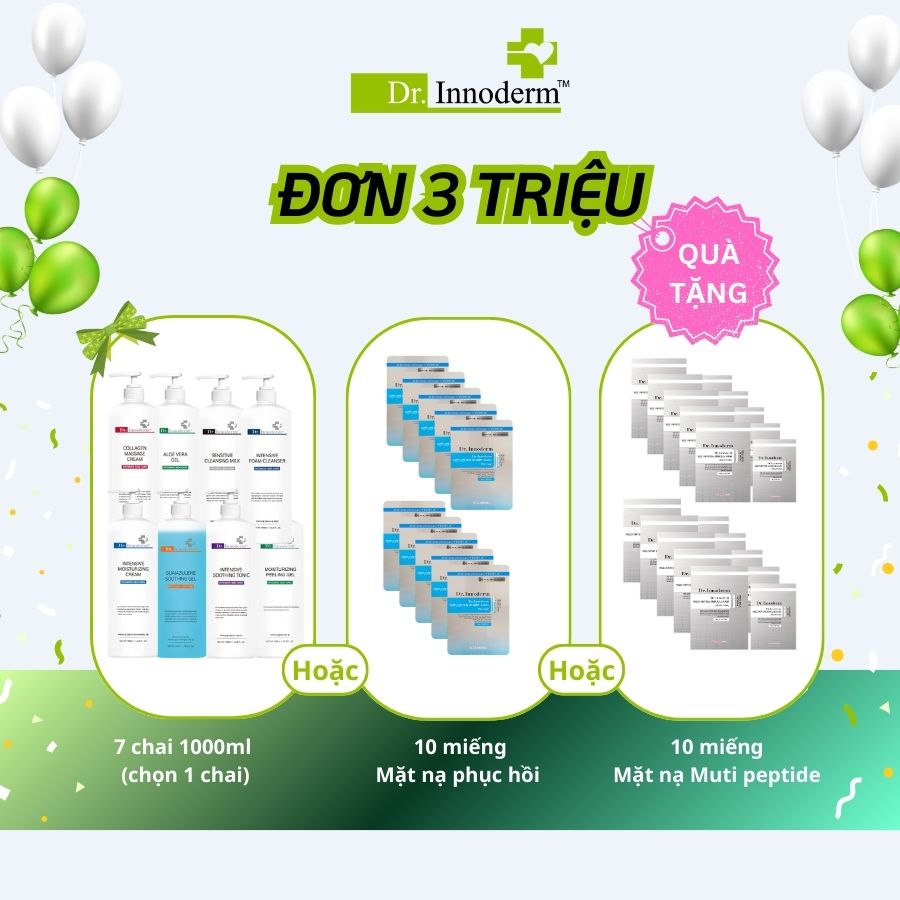 Đơn 3 Triệu: Tặng 1 trong các chai 1000ml của Dr.Innoderm hoặc mặt nạ post laser cooling ampoule mask/ mặt nạ 3 step revitalizing all-in-one solution/multi peptide ampoule mask (brightening)