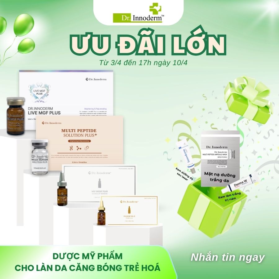 Đầu tháng 4, Dr. Innoderm mang đến chương trình khuyến mãi đặc biệt. Đây là dịp tuyệt vời để khách hàng có thể sở hữu những sản phẩm dược mỹ phẩm cao cấp với mức giá ưu đãi hấp dẫn.
