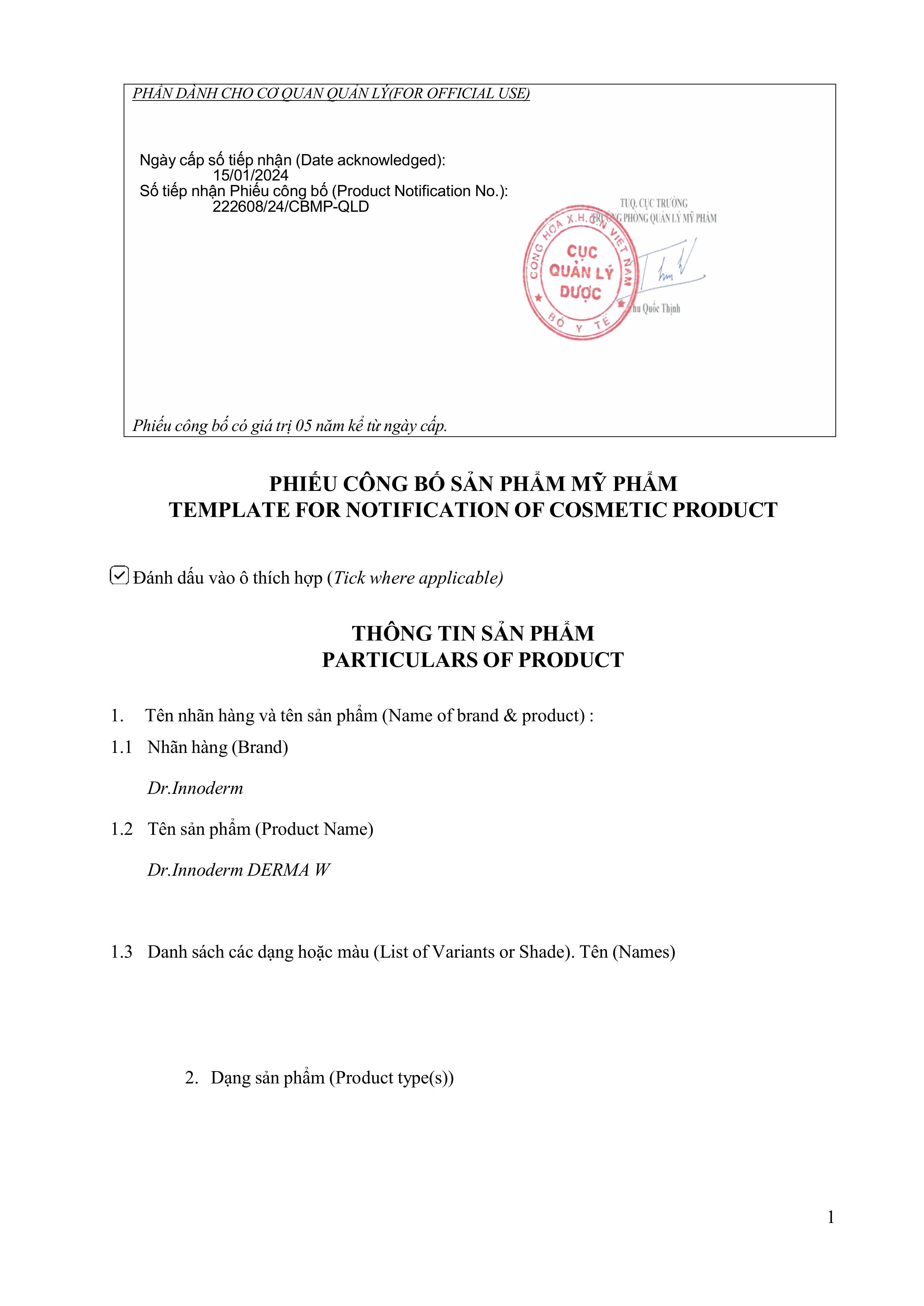 Cam kết 100% sản phẩm nhập khẩu chính hãng từ Dr. Innoderm Hàn Quốc.