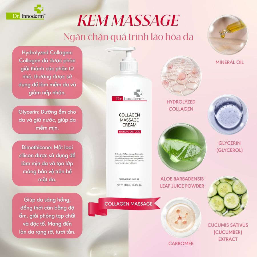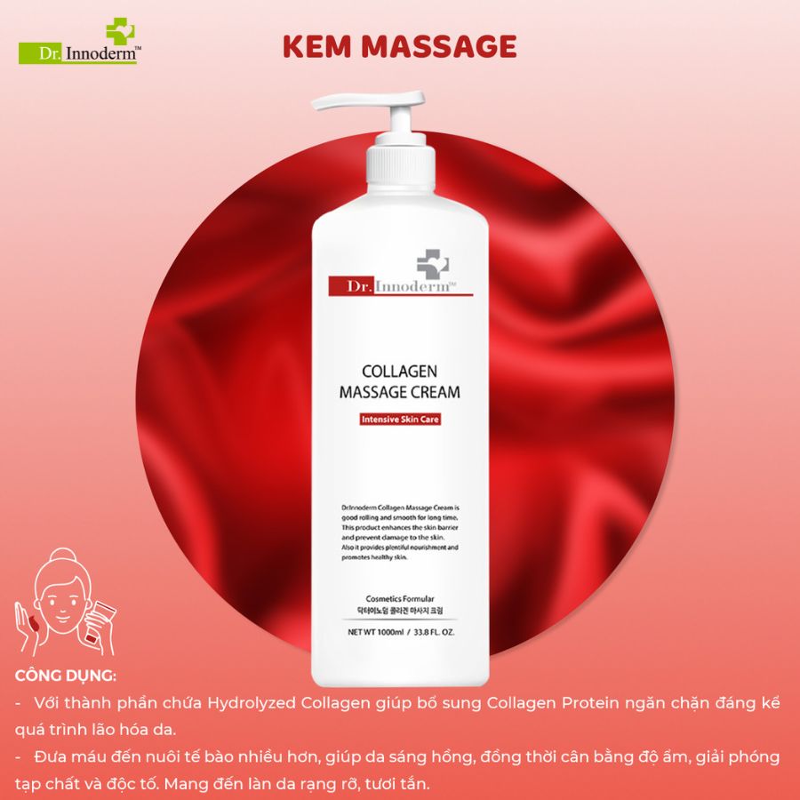 Kem Mát Xa Collagen Massage Cream giúp mang lại làn da săn chắc, trẻ trung và tươi sáng. Với công thức bổ sung collagen, sản phẩm giúp cải thiện độ đàn hồi, ngăn ngừa lão hóa và làm sáng da. Kem mát xa còn giúp kích thích lưu thông máu, loại bỏ tế bào chết và thư giãn tinh thần, mang lại hiệu quả toàn diện khi kết hợp với các thao tác massage.