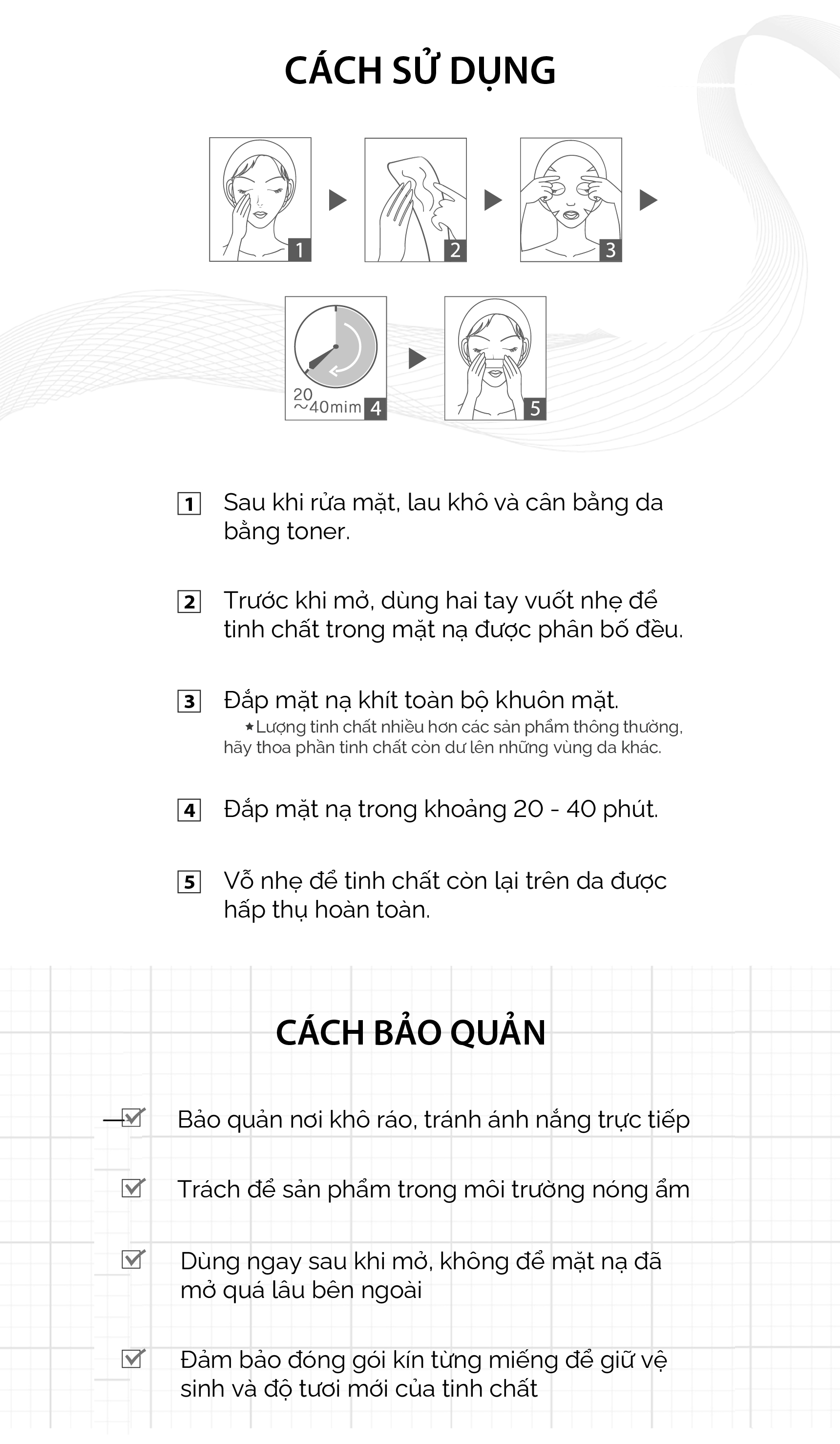 • Phù hợp cho các loại da: Da khô – thiếu nước, da khô – thiếu nước, da bong tróc, da nhạy cảm, da lão hóa – kém đàn hồi