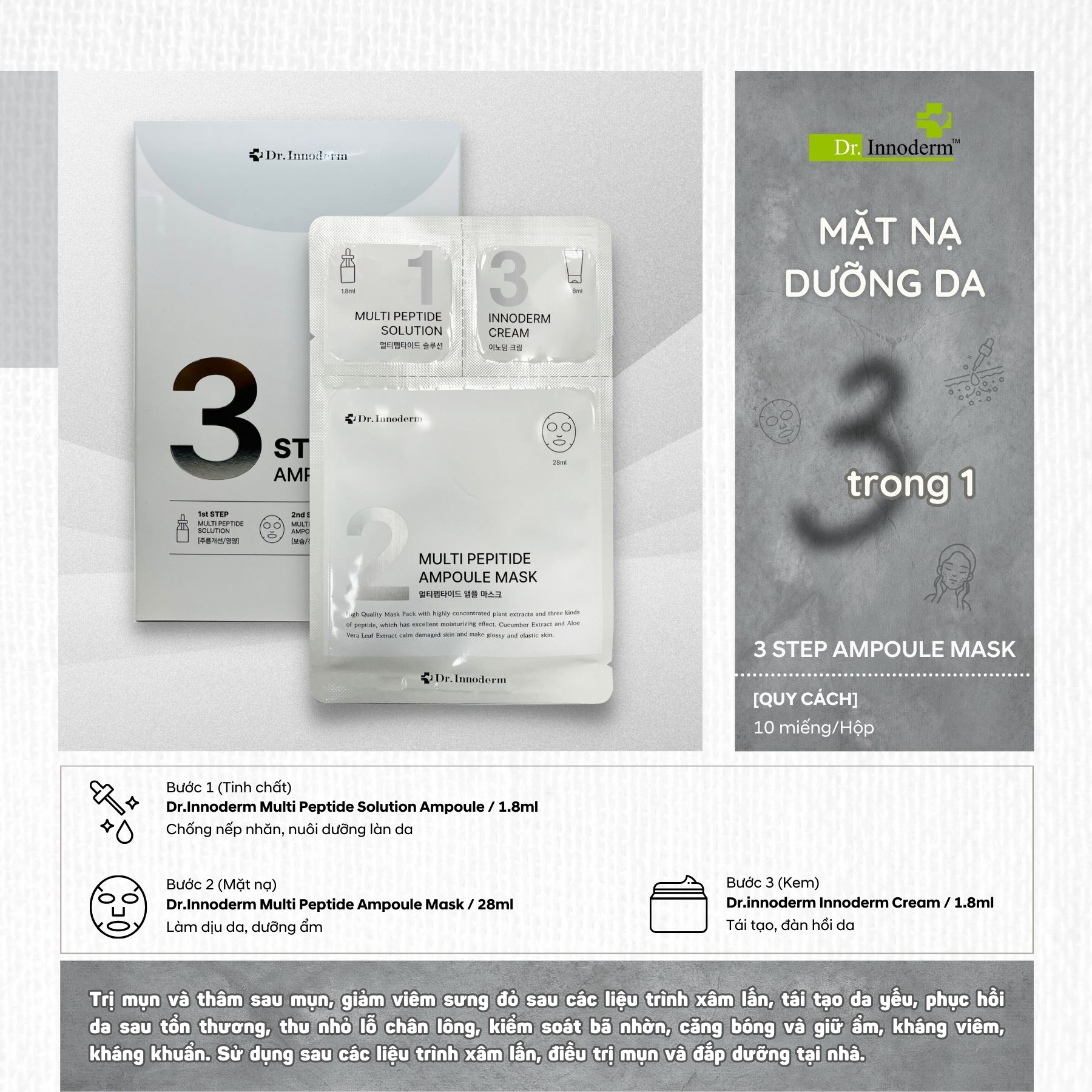 Bước 3 - Kem Dr.Innoderm (1.8ml): Kem Dr.Innoderm ngừa khô da và giữ ẩm da bằng cách tạo một hàng rào độ ẩm trên da. Centalla Asiatice Extract nuôi dưỡng làn da mịn màng và khỏe mạnh.