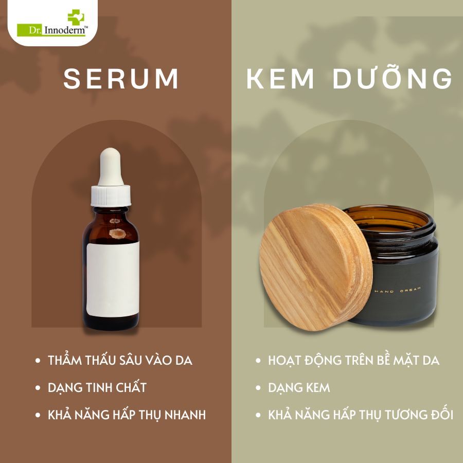 Khác với kem dưỡng da – thường chỉ hoạt động trên bề mặt để khóa ẩm, serum căng bóng da chống lão hoá mang lại hiệu quả sâu hơn từ bên trong. Điều này giúp da được nuôi dưỡng toàn diện, giảm rõ rệt tình trạng lão hóa nếu sử dụng đúng cách và đều đặn.
