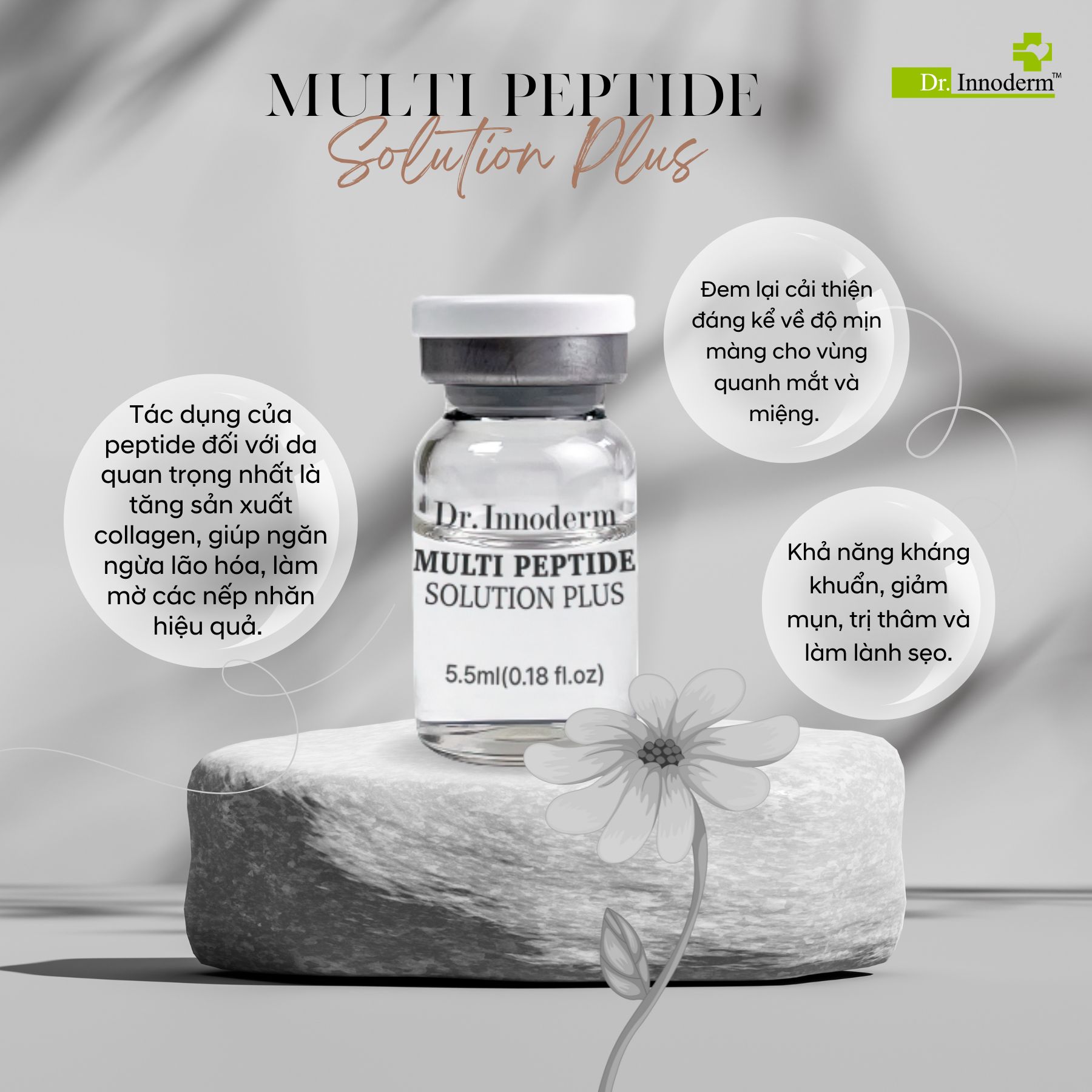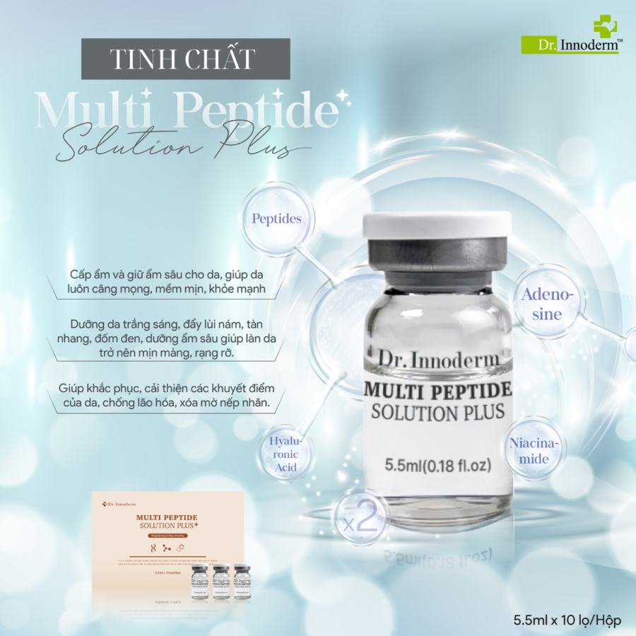 Tinh chất Multi Peptide Solution Plus là dòng tinh chất tính chất cao cấp đến từ Hàn Quốc. Được áp dụng công nghệ tiên tiến và môi trường nuôi cấy sinh học từ tế bào tự thân Human Adipocyte Conditioned Media (HACM) – mang đến giải pháp phục hồi và tái tạo da vượt trội nhờ giàu yếu tố tăng trưởng và hoạt chất sinh học tự nhiên. Sở hữu công thức độc quyền và thành phần giàu dưỡng chất, sản phẩm mang lại hiệu quả vượt trội trong phục hồi da đa tầng từ bên trong, xoá nhăn, chống lão hóa và làm sáng mịn làn da.