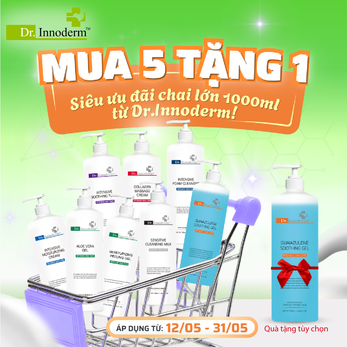 Trong thời gian diễn ra chương trình, khi mua 5 chai 1000ml bất kỳ thuộc dòng sản phẩm chăm sóc da của Dr.Innoderm, khách hàng sẽ được tặng ngay 1 chai 1000ml bất kỳ. Đây là chương trình đặc biệt dành riêng cho các chủ spa, thẩm mỹ viện hoặc những ai có nhu cầu mua số lượng lớn để sử dụng lâu dài.