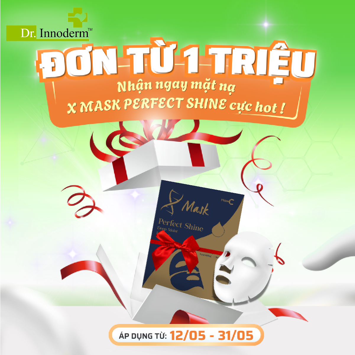 Với mỗi đơn hàng từ 1.000.000 VNĐ trở lên khi mua sản phẩm đến từ thương hiệu Dr.Innoderm, bạn sẽ được tặng ngay mặt nạ nâng cơ X Mask Perfect Shine – mặt nạ chứa các thành phần dưỡng chất cao cấp, giúp cấp ẩm, phục hồi, nâng cơ và làm sáng da hiệu quả, phù hợp với mọi loại da, đặc biệt trong thời tiết nắng nóng.